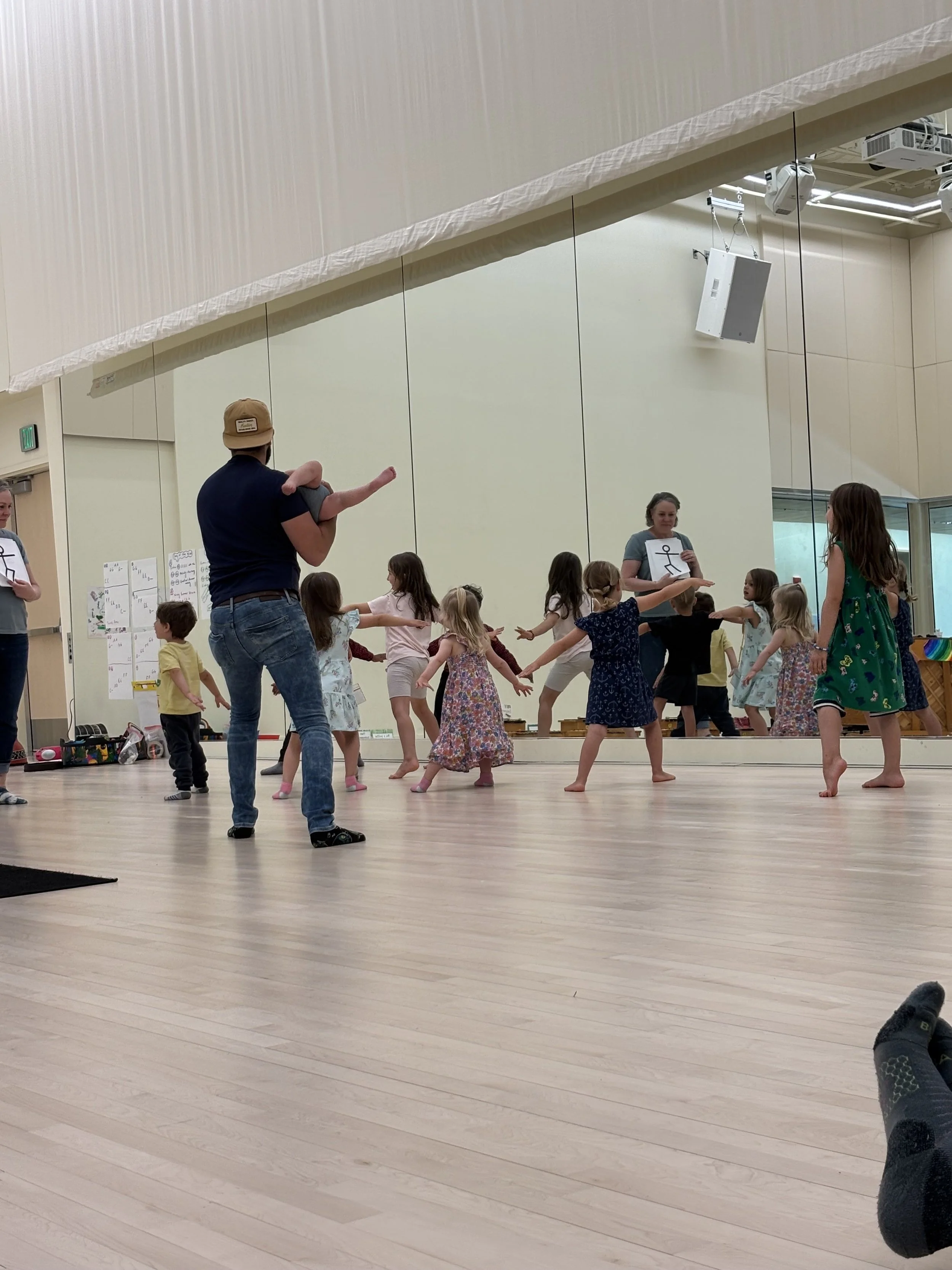 In this class, we will explore a variety of dances from the United States and around the world, based on compilations such as *Dance Music for Children* by the Shenanigans, *Rhythmically Moving* by Phyllis Weikert, and the *New England Dancing Masters*.